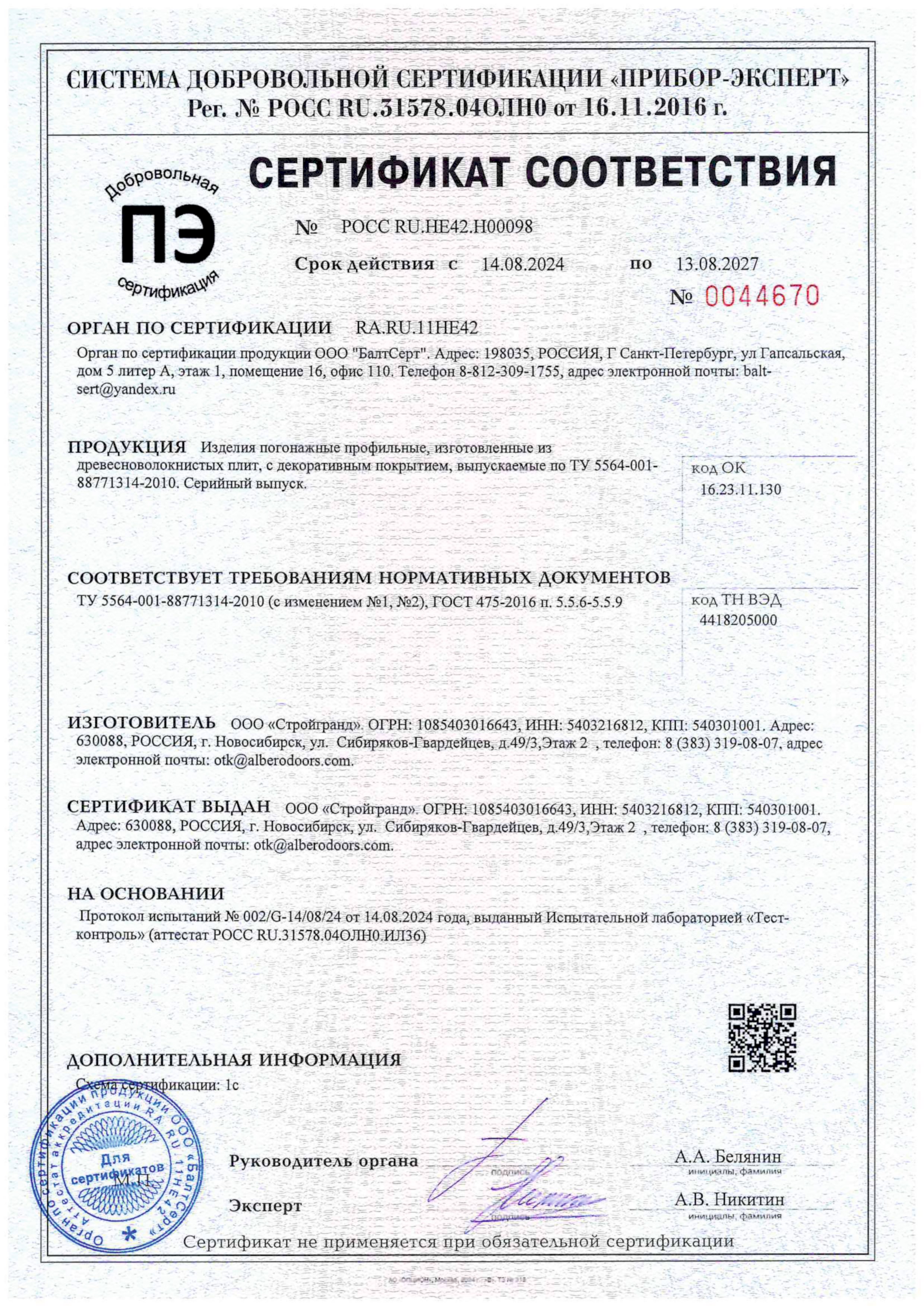 СТАНДАРТЫ И СЕРТИФИКАТЫ